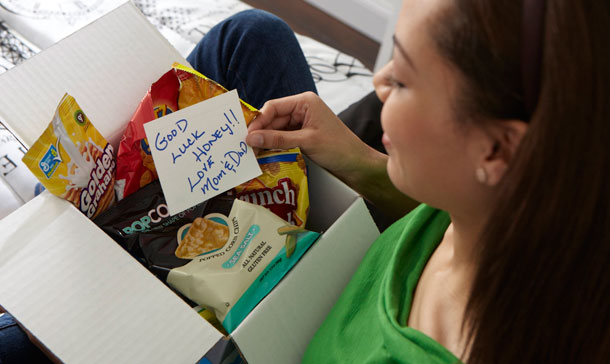 Housing and Residence Life makes it easy for parents or other family members to send a care package to their students on special occasions or just for fun. Whether it’s a holiday gift pack or a little extra boost for finals, our care packages let students know their family members are thinking about them. When the package is ready, the student will be notified.
